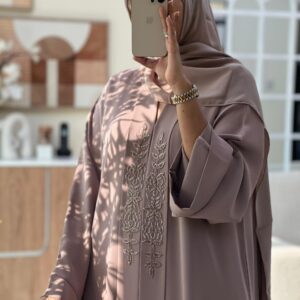 The Serenity Bloom Abaya embodies elegance and charm, making it a must-have for any wardrobe. Designed with meticulous embroidery that cascades down the front, this abaya is the perfect balance between modern sophistication and traditional modesty. The neutral yet rich tone complements all skin tones, adding a graceful aura to any occasion.